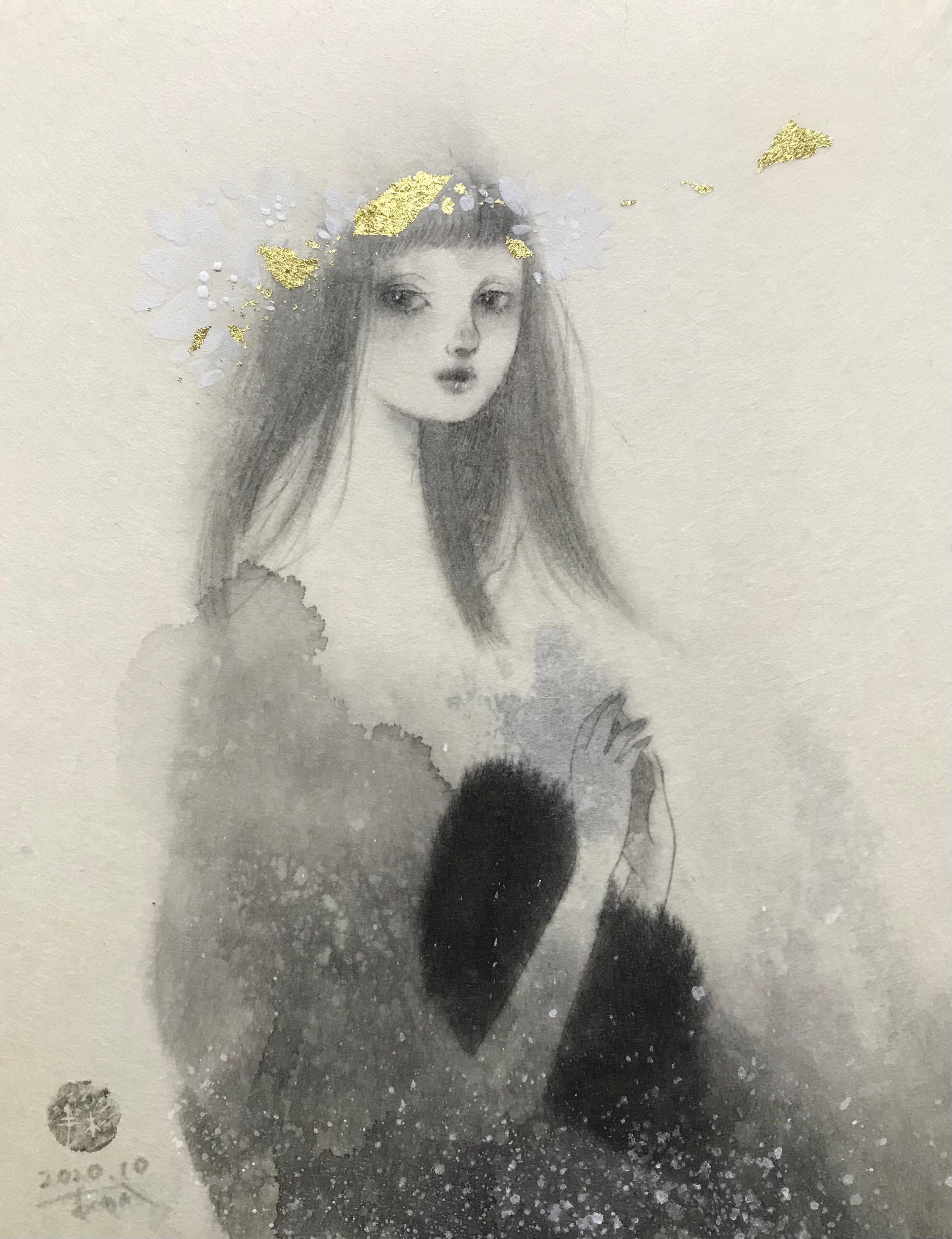 画材:墨、胡粉、金/楮雁皮ブレンド和紙