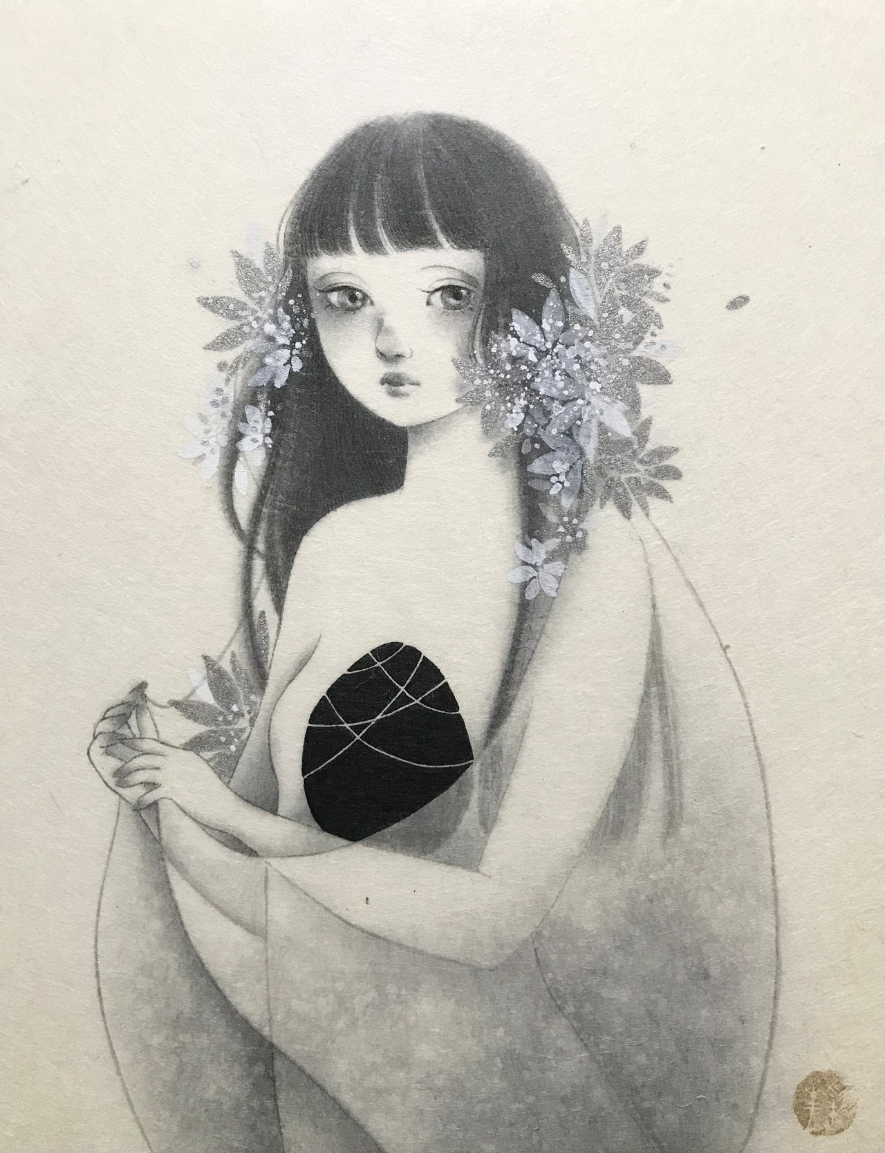 画材:墨.胡粉.プラチナ/楮雁皮ブレンド和紙