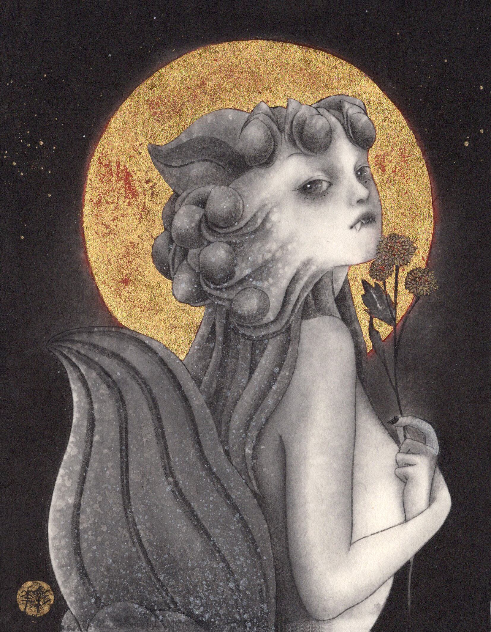 画材:墨、胡粉、金、透明水彩/楮雁皮ブレンド和紙